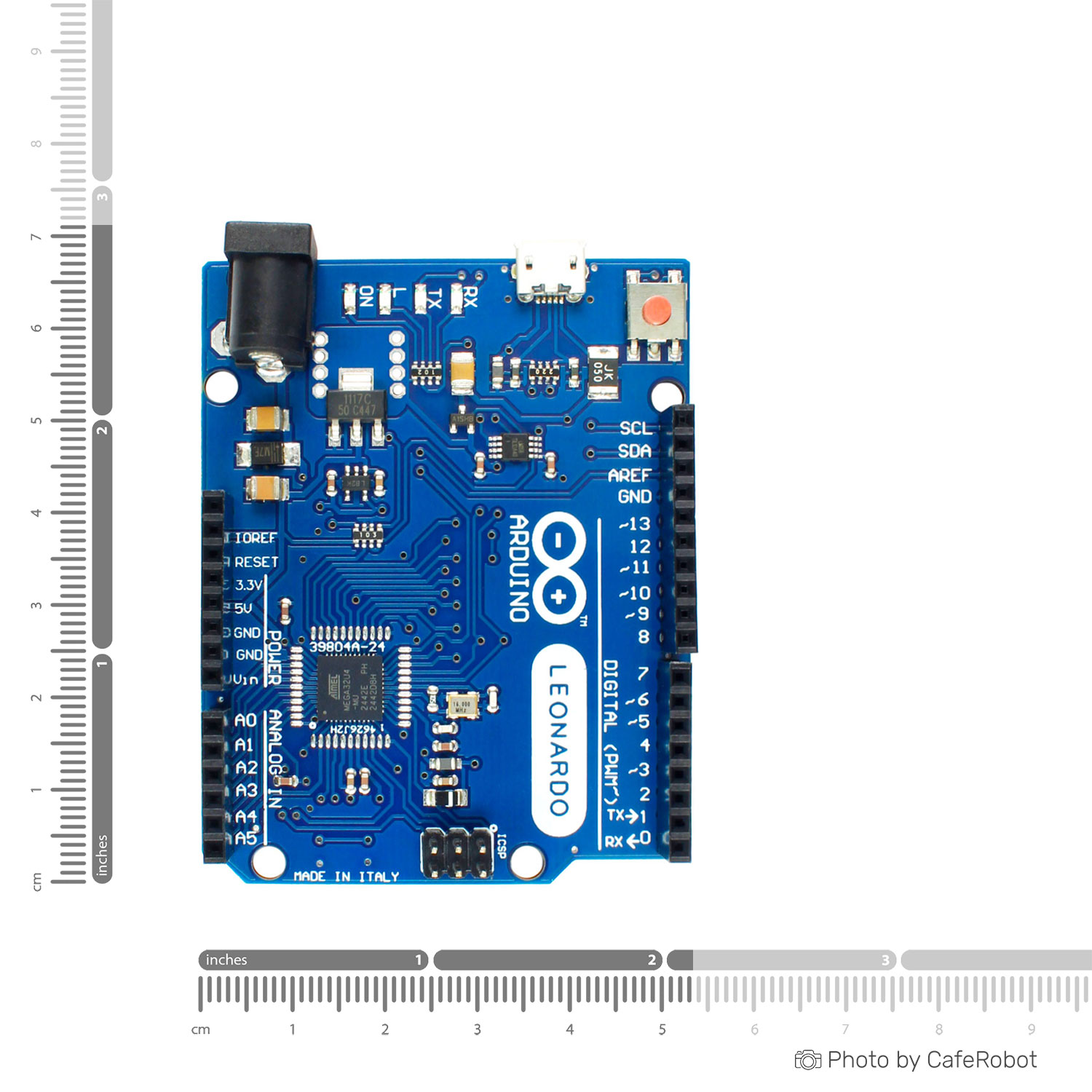 Arduino Leonardo یک برد بر پایه میکروکنترلر ATmega32U4 است که دارای 20 پین ورودی-خروجی دیجیتال می باشد. تعداد 7 پین از این پین های ورودی – خروجی می توانند به عنوان خروجی PWM استفاده گردند. همچنین 12 پین می توانند به عنوان ورودی آنالوگ مورد استفاده قرار گیرند. همچنین این برد دارای کریستال 16 مگاهرتز، پورت میکرو USB، پاور جک، ICSP header و دکمه ریست می باشد.