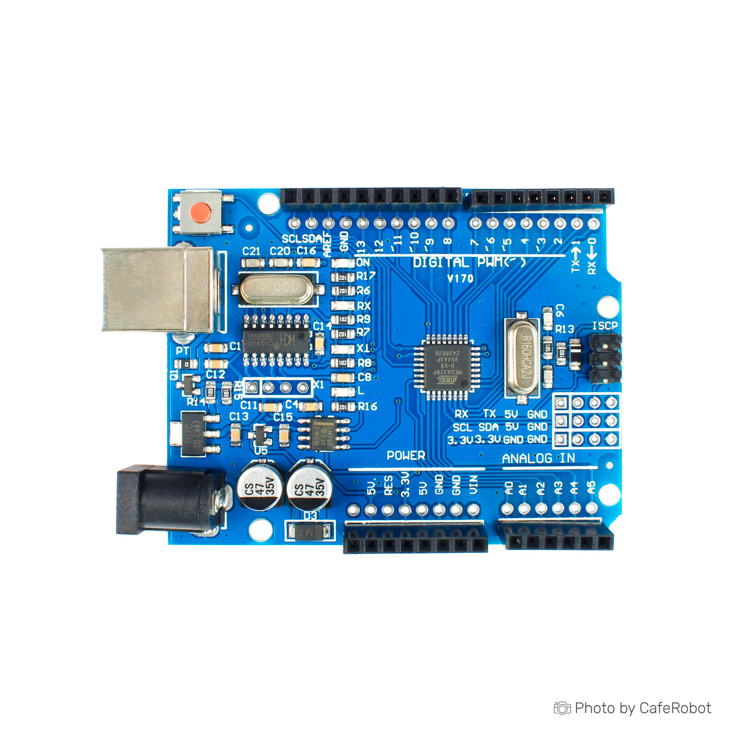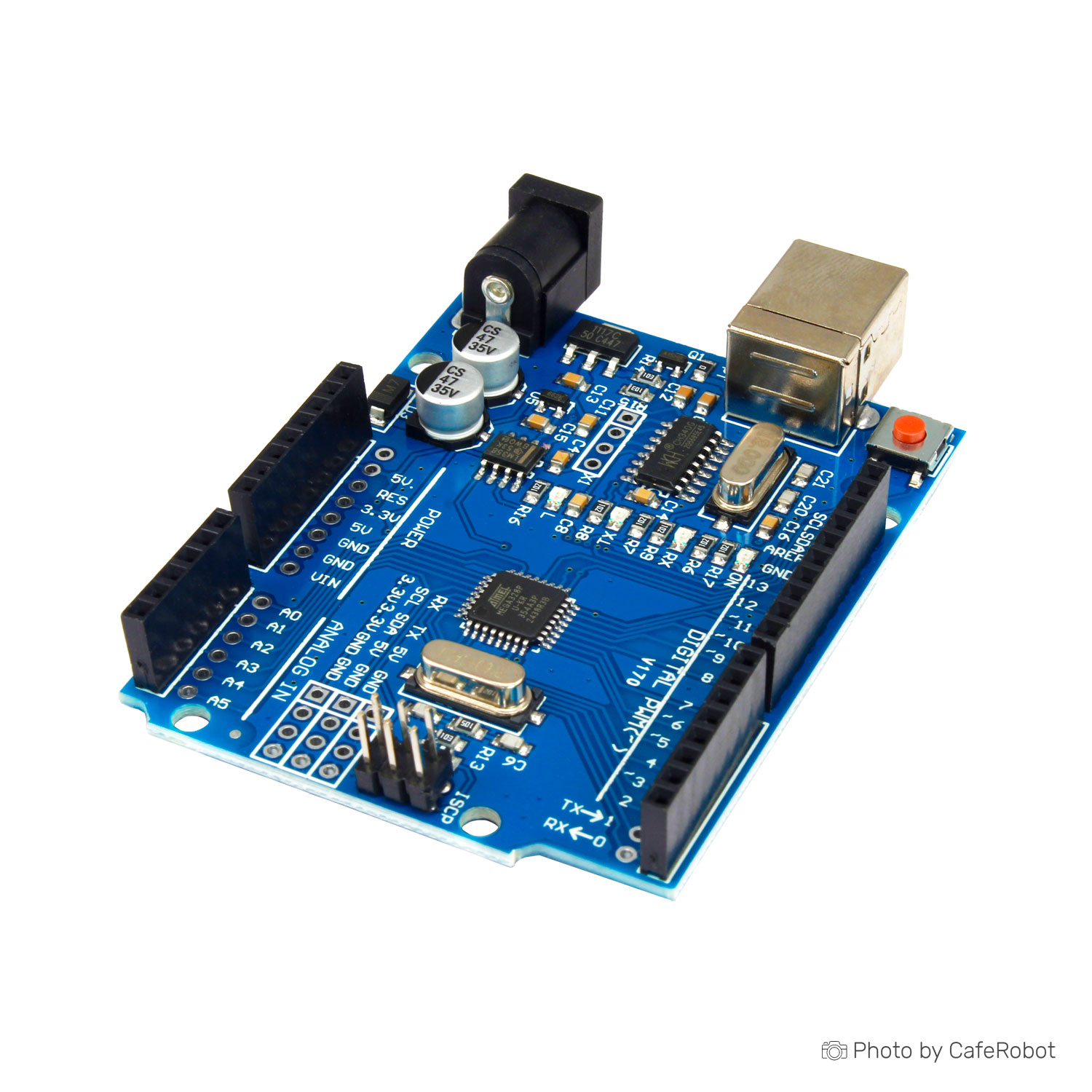 Arduino UNO boards can be found both in original versions produced by Arduino and in clones (Here CH340G version) manufactured by various Chinese companies.