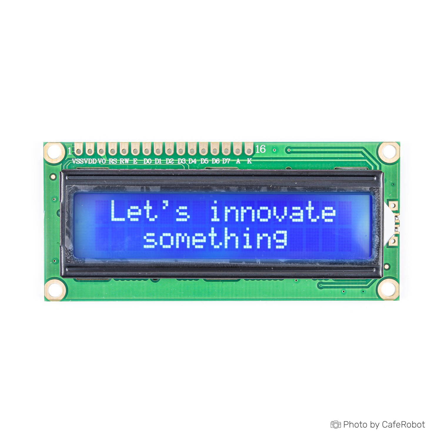 نمایشگر کاراکتری با قالب 16×2، یک نمایشگر با 16 کاراکتر (character) و 2 خط (line) میباشد. از این نوع السیدیها معمولا میتوان جهت نشان دادن متن، کاراکتر و عدد بهره برد که دارای انواع و رنگهات مختلفی میباشند. نکته مهم این جاست که این نمایشگر بک لایت یا آپشنهای بک لایت LED را ندارد ولی دارای طیفهای رنگی گوناگونی برای برای نور پس زمینه LCD از قبیل زرد، سبز، آبی و … میباشد.
